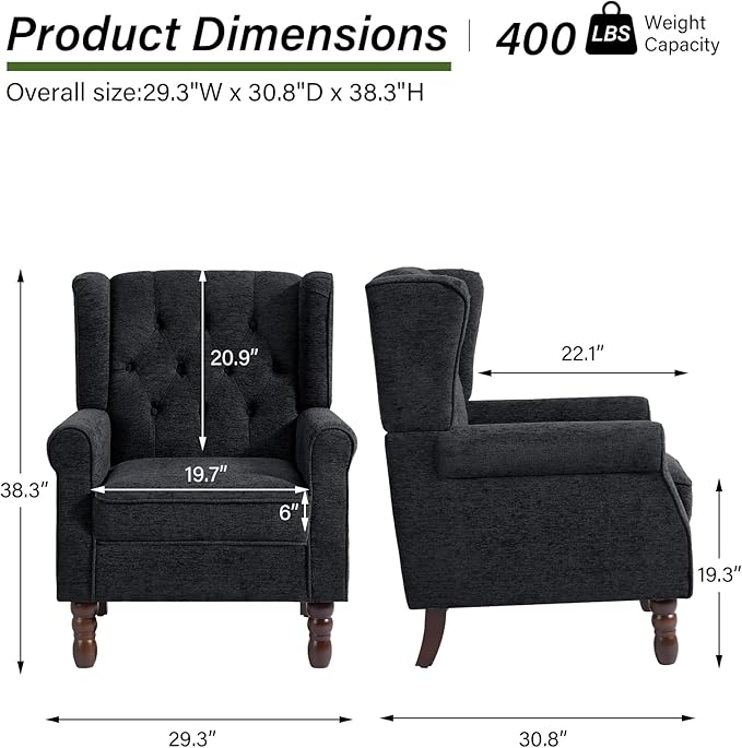 • High Back Accent Chair: The wingback of living room chairs is higher, which can better relieve the pressure on the back and waist, and bring a comfortable sitting experience
