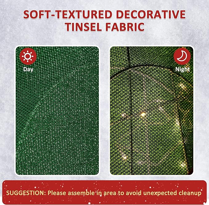 - Premium Quality: Our lighted Christmas decoration is made of a high quality powder-coated steel frame which ensures the long service life. It is durable enough for you to use year over year and it wouldnât break easily. Decorative tinsel fabric gives you soft feeling while touching it